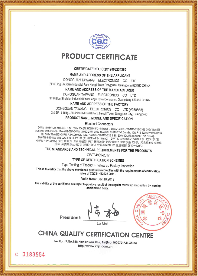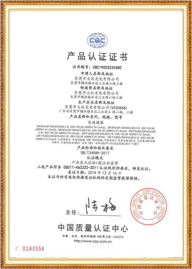 三插+品字尾组件CCC证书